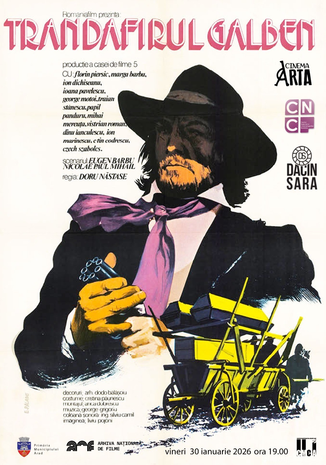 ARAD. Filmul „Trandafirul galben”(r. Doru Năstase), cel de-al doilea film din seria „Mărgelatu”, care continuă acțiunea din „Drumul oaselor” va fi proiectat la Cinematograful „Arta” din Arad, pentru a-l sărbători pe Florin Piersic, care împlinește anul acesta 90 de ani. Proiecția va avea loc vineri, 30 ianuarie 2026, de la ora 19.00. Accesul publicului este gratuit, în limita locurilor disponibile.