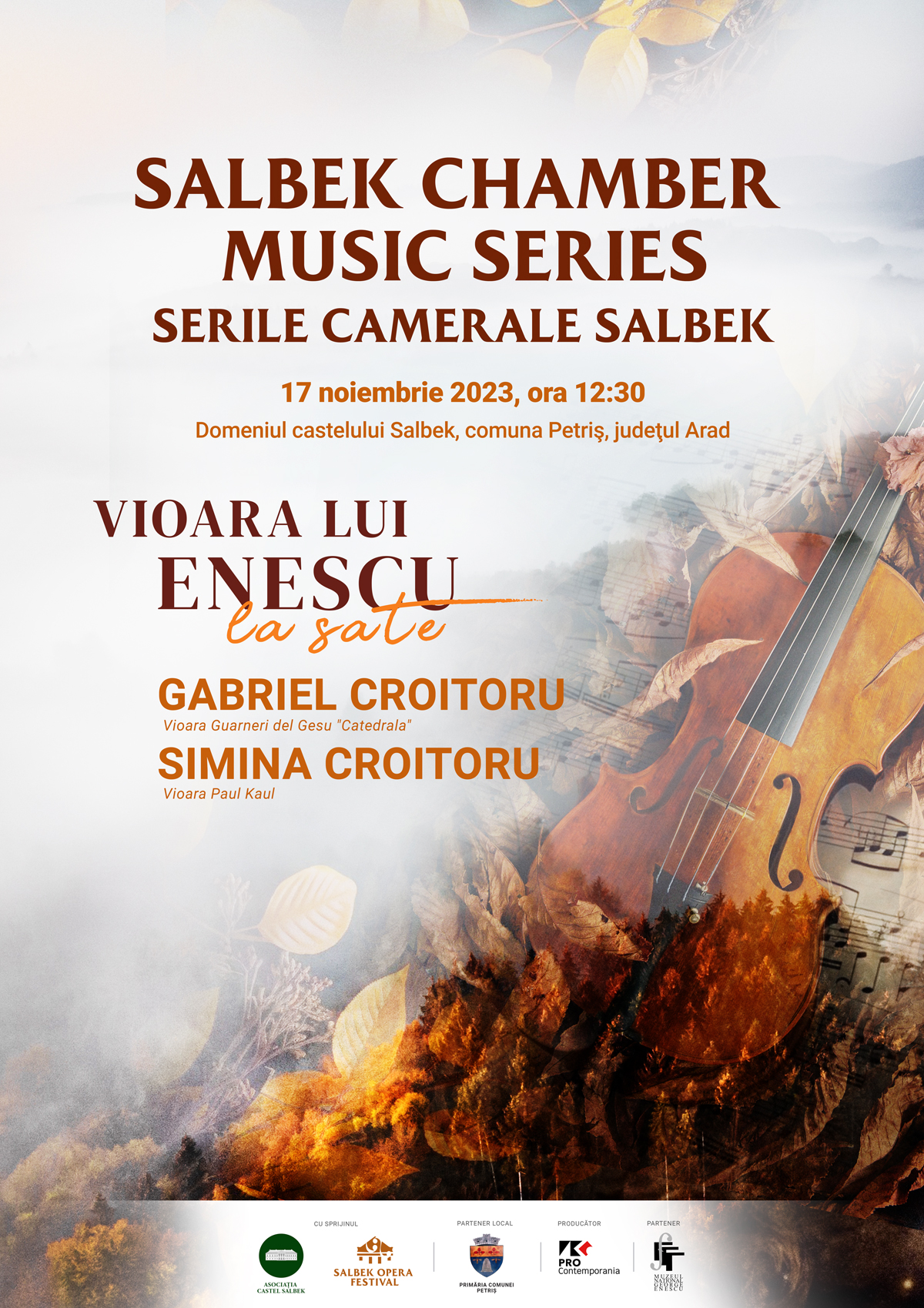 „Serile camerale Salbek – Salbek Chamber Music Series” se numeşte cel mai nou proiect programat a se desfăşura pe domeniul Castelului Salbek din comuna Petriş. Proiectul va porni vinerea viitoare, pe 17 noiembrie, când va avea loc recitalul „Vioara lui Enescu la sate”, cu violoniștii Gabriel Croitoru și Simina Croitoru.