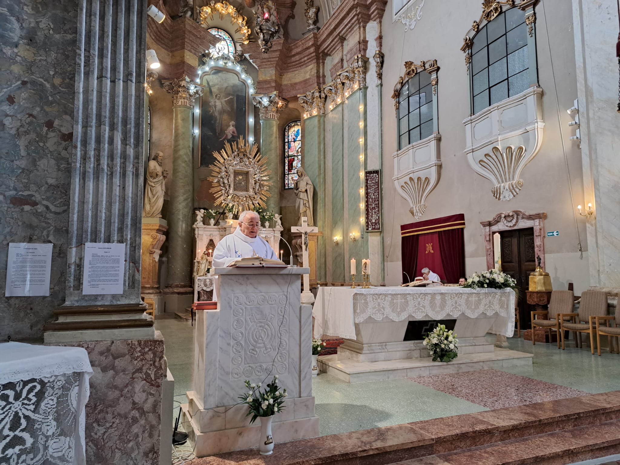 Programul Sfintelor Liturghii continuă luni, de la ora 11, cu slujba din a doua zi de Paște. Toate slujbele oficiate sunt transmise pe pagina de Facebook „Basilica Maria Radna”.