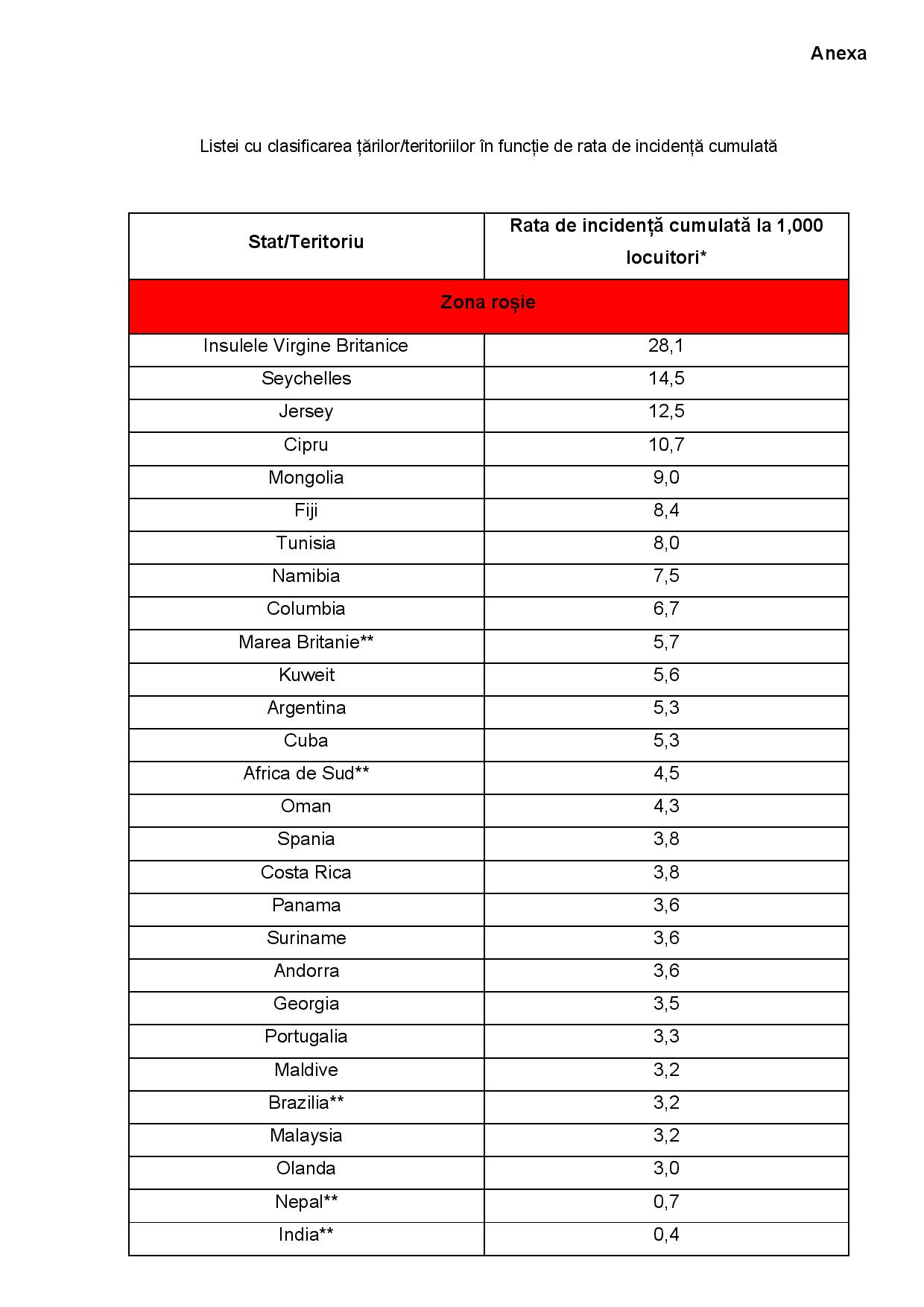 Potrivit documentului CNSU pe lista roșie se regăsesc și țările: Spania, Olanda și Protugalia, în timp ce Grecia a trecut în rândul țărilor de pe lista galbenă.