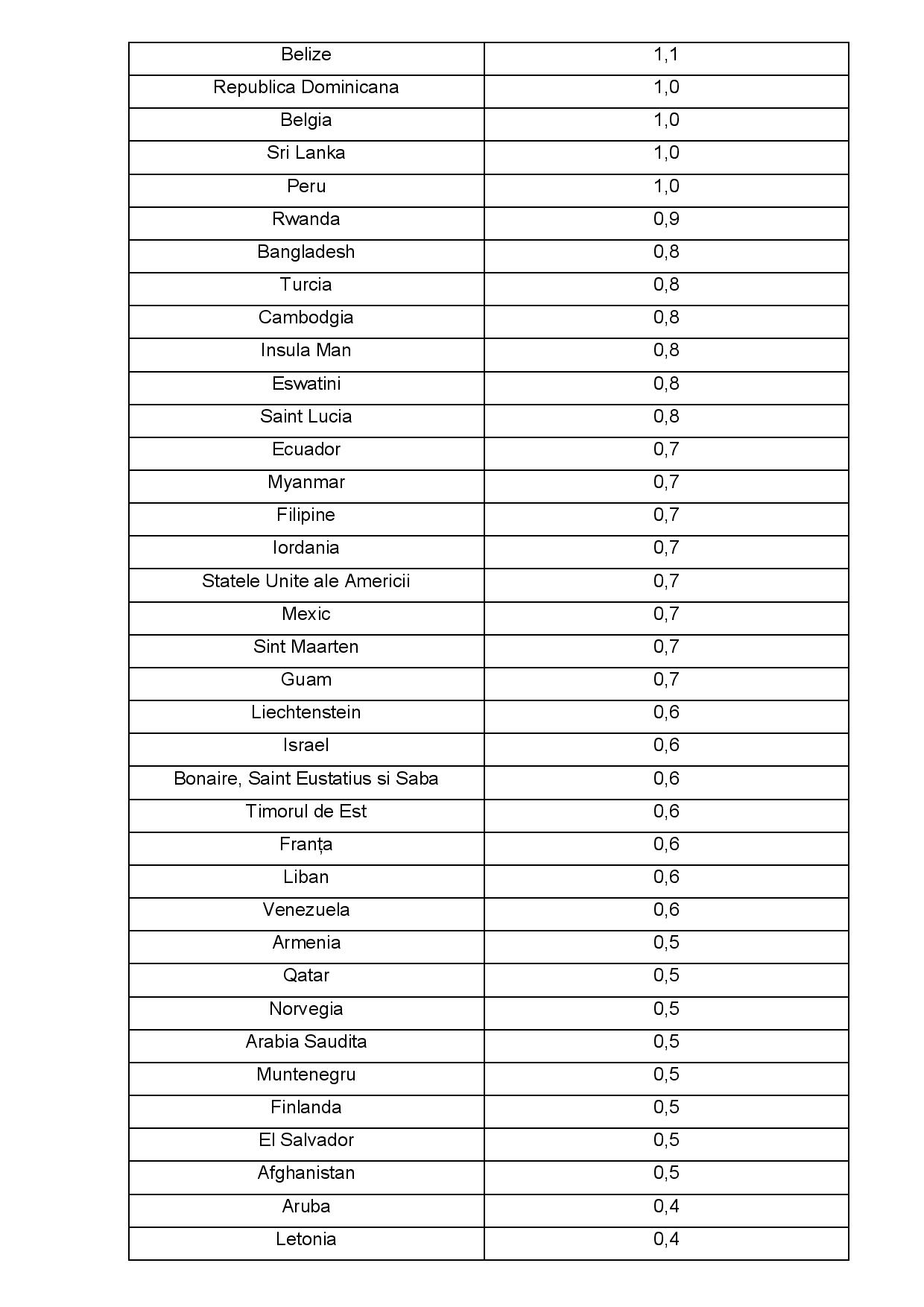 Cuba, a 8-a la incidenta cu 6,38% si 17,8% rata vaccinare, Botswana, a 9-a ca incidenta cu 6,24 la mie si doar 4,7% rata vaccinare.