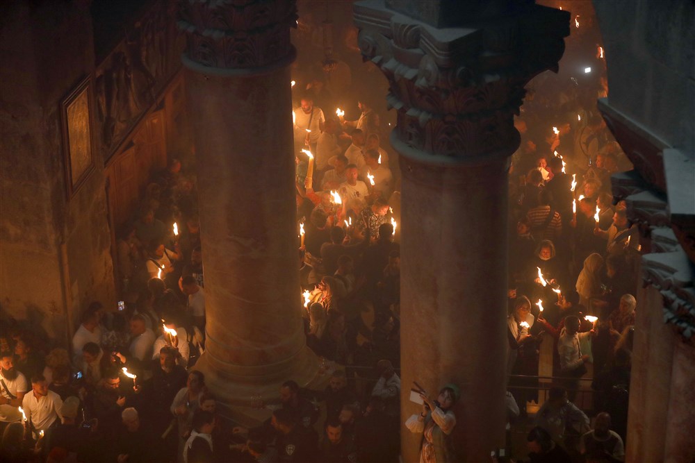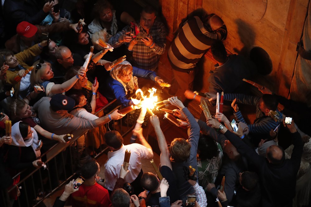 După o aşteptare de mai multe ore, ceremonia culminează când patriarhul ortodox grec al Ierusalimului apare din mormânt cu o lumânare aprinsă, un act misterios, considerat un miracol anual în Sâmbăta Mare, ajunul Paştelui ortodox.