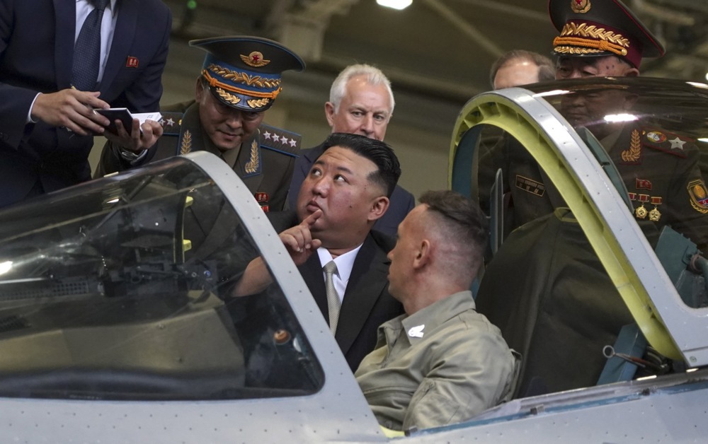 Kim a inspectat vineri o fabrică de avioane de luptă ruseşti aflată sub sancţiuni occidentale.