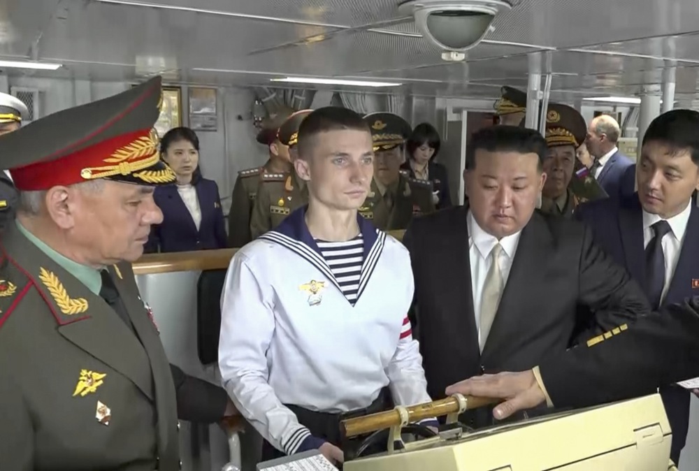 După avioane şi rachete, Kim a inspectat o navă de război a Flotei Ruse din Pacific la Vladivostok, pentru a urmări apoi o demonstraţie a marinei ruse.