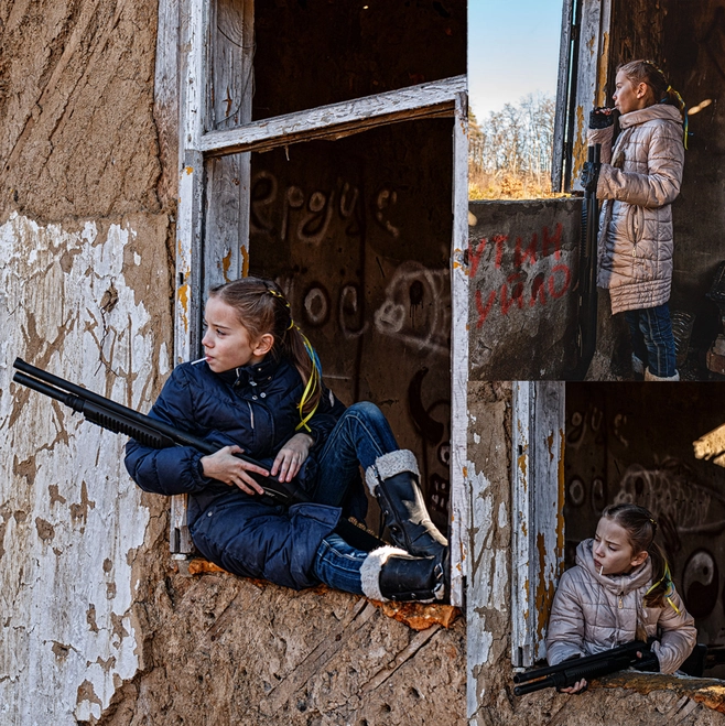 „Istoria unei fotografii. Numele meu este Alexei. Am o soție și trei copii. (…) Fotografia este hobby-ul meu. Am absolvit niște cursuri de artă fotografică. Tensiunea nervoasă a fost foarte mare în ultimele săptămâni, înainte de război. Informațiile venite arătau că un război va fi inevitabil, dar a fost de necrezut pentru noi. În același timp, societatea occidentală a demonstrat că este „ingrijorată” și nu a aplicat nicio sancțiune împotriva Rusiei. Am decis să fac câteva fotografii care să atragă atenția asupra posibilului război. După cum se vede, am făcut această fotografie pe 22.02.2022, adică cu două zile înainte de război. Aceasta este o fotografie a fiicei mele cu o bomboană și cu o pușcă într-o clădire abandonată. Arma este a mea, fata nu poate să tragă. Are 9 ani. Desigur, arma nu a fost încărcată în timpul fotografierii”, a scris Alexei duminică pe Facebook, potrivit Gândul.