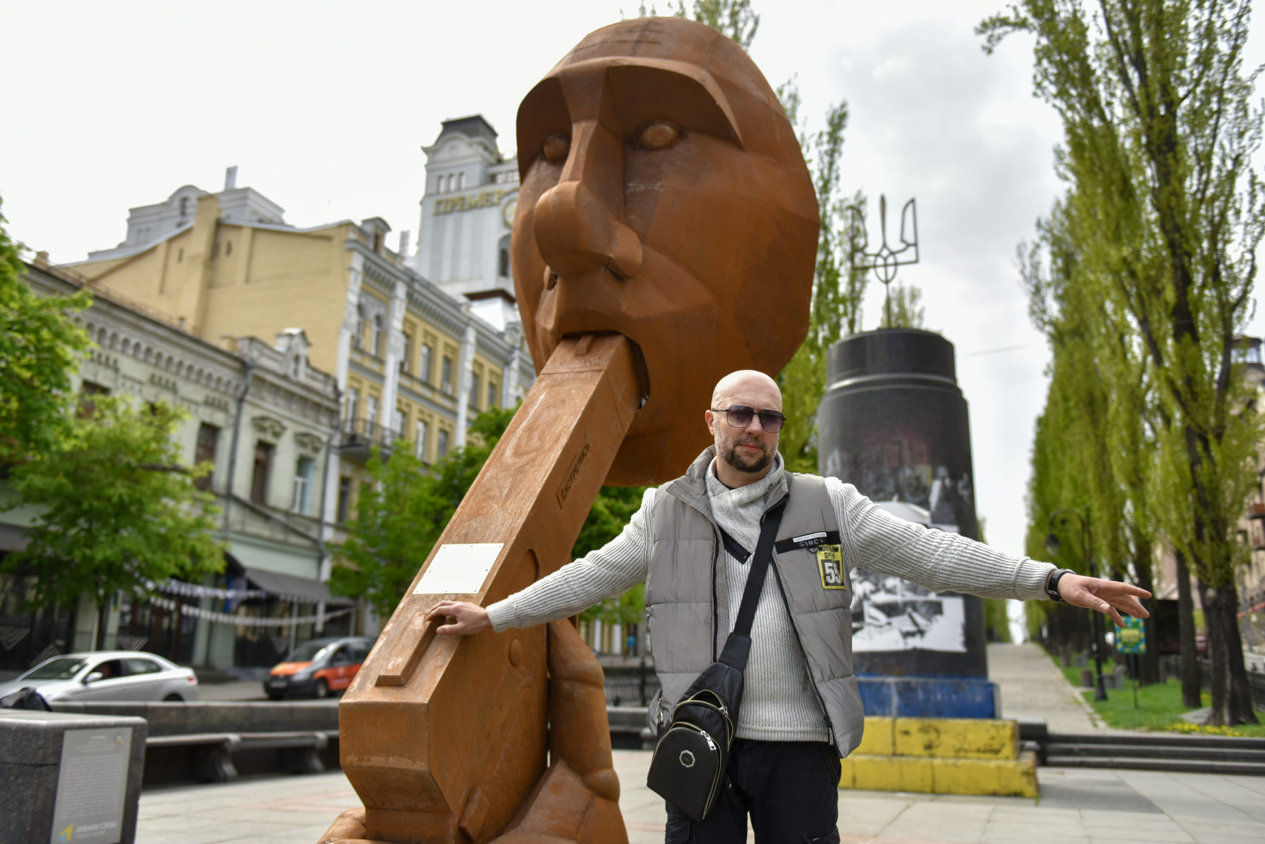 Iv a confecţionat sculptura în 7 zile şi a precizat că aceasta a fost instalată doar temporar, până când Ucraina va învinge invadatorii.