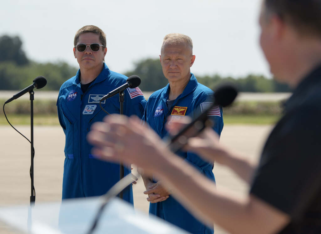 La bordul navei vor urca astronauţii Bob Behnken şi Doug Hurley. Behnken are 48 de ani, iar Hurley are 53 de ani. Amândoi sunt astronauţi experimentaţi ai NASA şi au fost implicaţi încă de la început în testarea capsulei Crew Dragon.