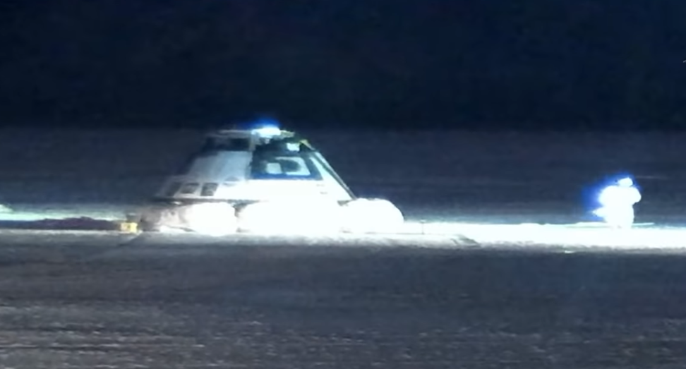 Capsula a aterizat la ora 05:58 (12:58 GMT) la baza White Sands, New Mexico, cu un minut întârziere faţă de momentul prevăzut. Ea a aterizat “chiar în locul stabilit”, a declarat Steve Siceloff, purtătorul de cuvânt al Boeing.