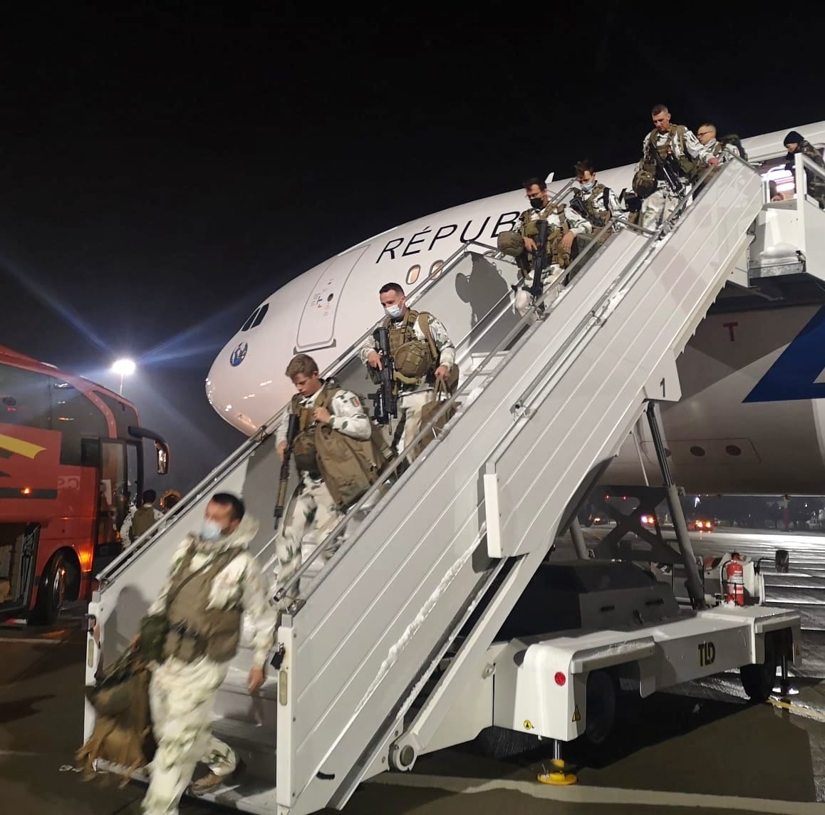 Militarii au fost întâmpinaţi de Excelenţa Sa, Laurence Auer, ambasadorul Republicii Franceze în România, şi de comandantul Comandamentului Multinaţional de Divizie Sud – Est, generalul – maior Cristian Dan.