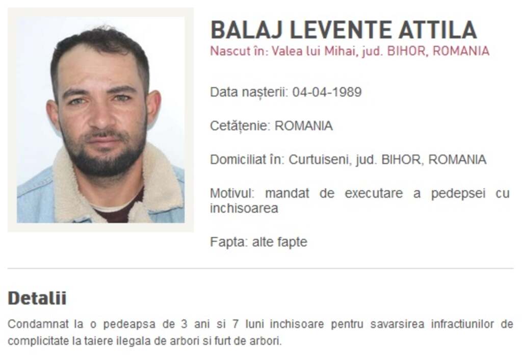 Bihor. El nu a fost găsit de polițiști pentru a fi dus la Penitenciarul Oradea, unde să-și execute condamnarea devenită definitivă la sfârșitul lunii aprilie.
