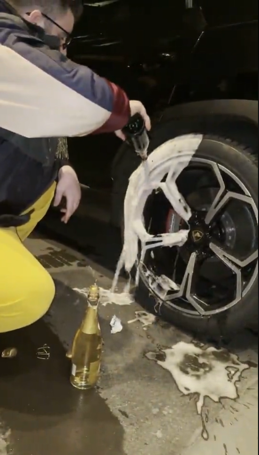 Fiul afaceristului Viorel Micula a devenit din nou viral, după ce s-a filmat în timp ce spală roțile Lamborghini-ului său de aproximativ 250.000 de euro cu două tipuri de șampanii, potrivit cancan.ro.