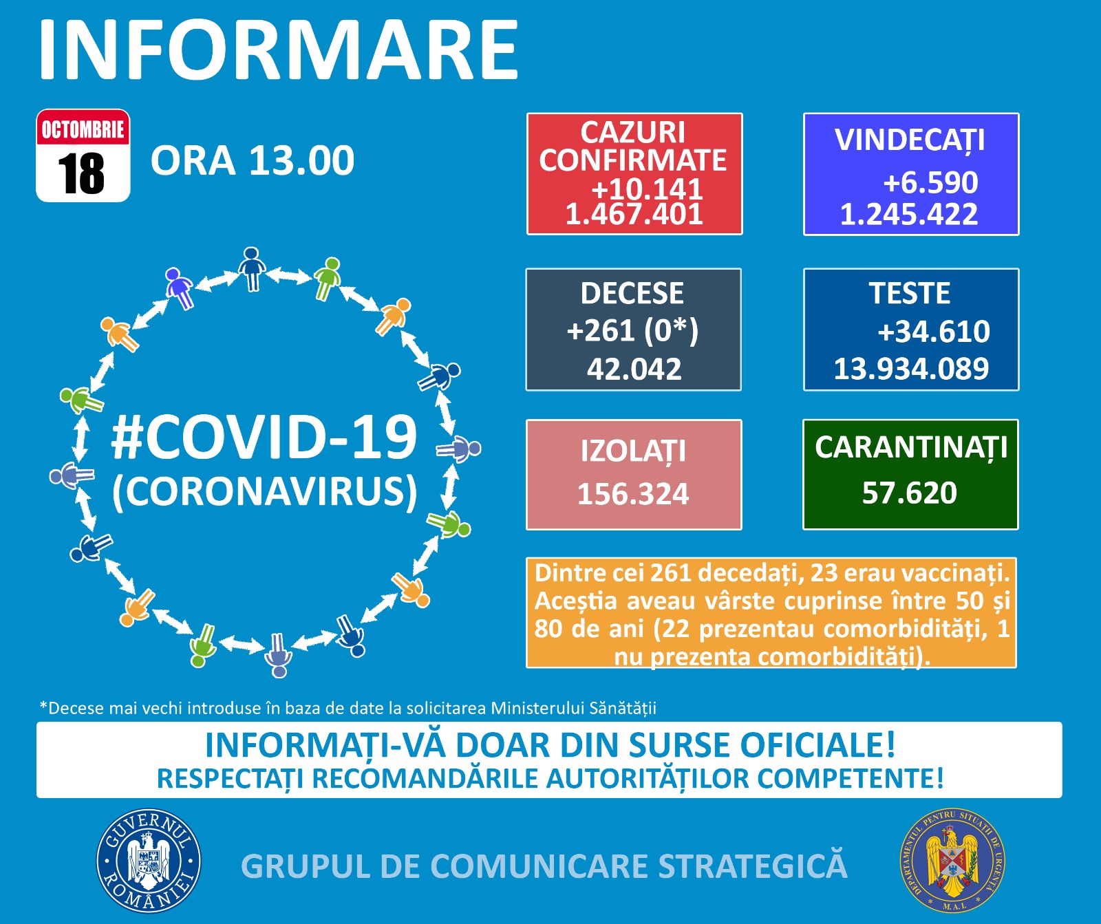 COVID. În ultimele 24 de ore au fost înregistrate 10.141 de cazuri noi de persoane infectate cu SARS – CoV – 2 (COVID – 19), dintre care 145 sunt ale unor pacienți reinfectați, testați pozitiv la o perioadă mai mare de 180 de zile după prima infectare. S-au efectuat 11.427 de teste RT-PCR (6.905 în … Continue reading Covid național: Peste 1.750 de persoane la ATI, dintre care 41 sunt copii