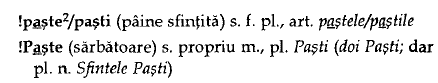 Potrivit DOOM (Dicționarul Ortografic, Ortoepic și Morfologic al limbii române), sunt acceptate ambele forme care definesc sărbătoarea Învierii Domnului – atât Paște, cât și Paști.