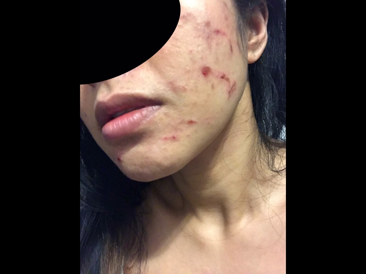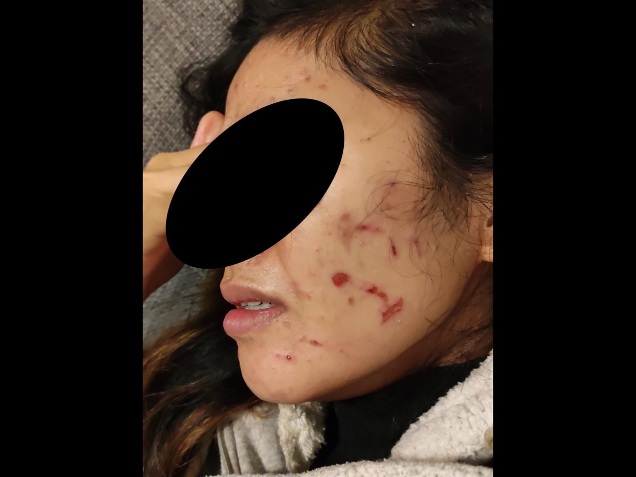 Tânăra de 35 de ani a fost preluată de o ambulanță și a fost transportată la spital pentru investigații și îngrijiri medicale. Este plină de zgârieturi pe față și are vânătăi în zona gâtului.