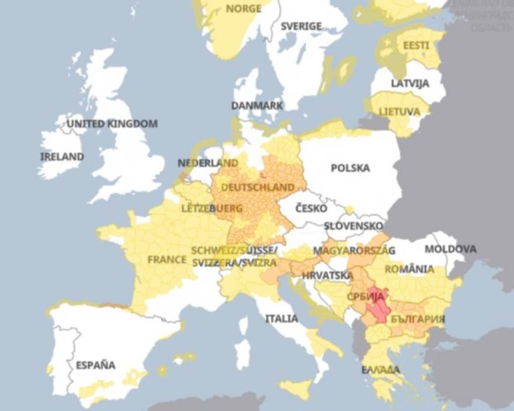 Specialiştii au emis deja avertizări cod roşu şi portocaliu în Germania, cod portocaliu de furtuni în nordul Italiei, Slovenia şi vestul Ungariei, dar şi cod galben de vânt şi furtuni în Franţa, Elveţia şi Belgia.
