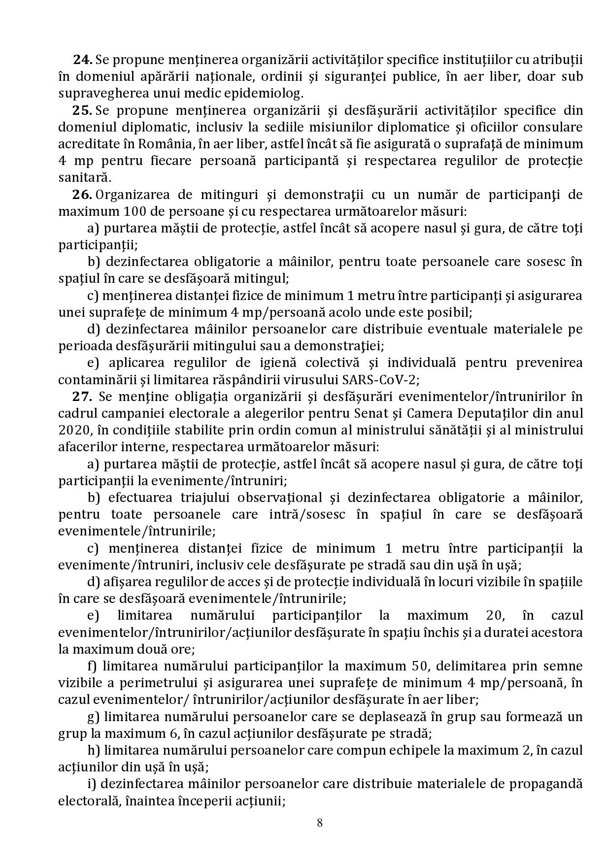 O parte a hotărârii se referă la modul în care se vor organiza alegerile pentru Senat și Camera Deputaților; se vor aplica aceleași măsuri care au fost valabile și pe timpul alegerilor locale.
