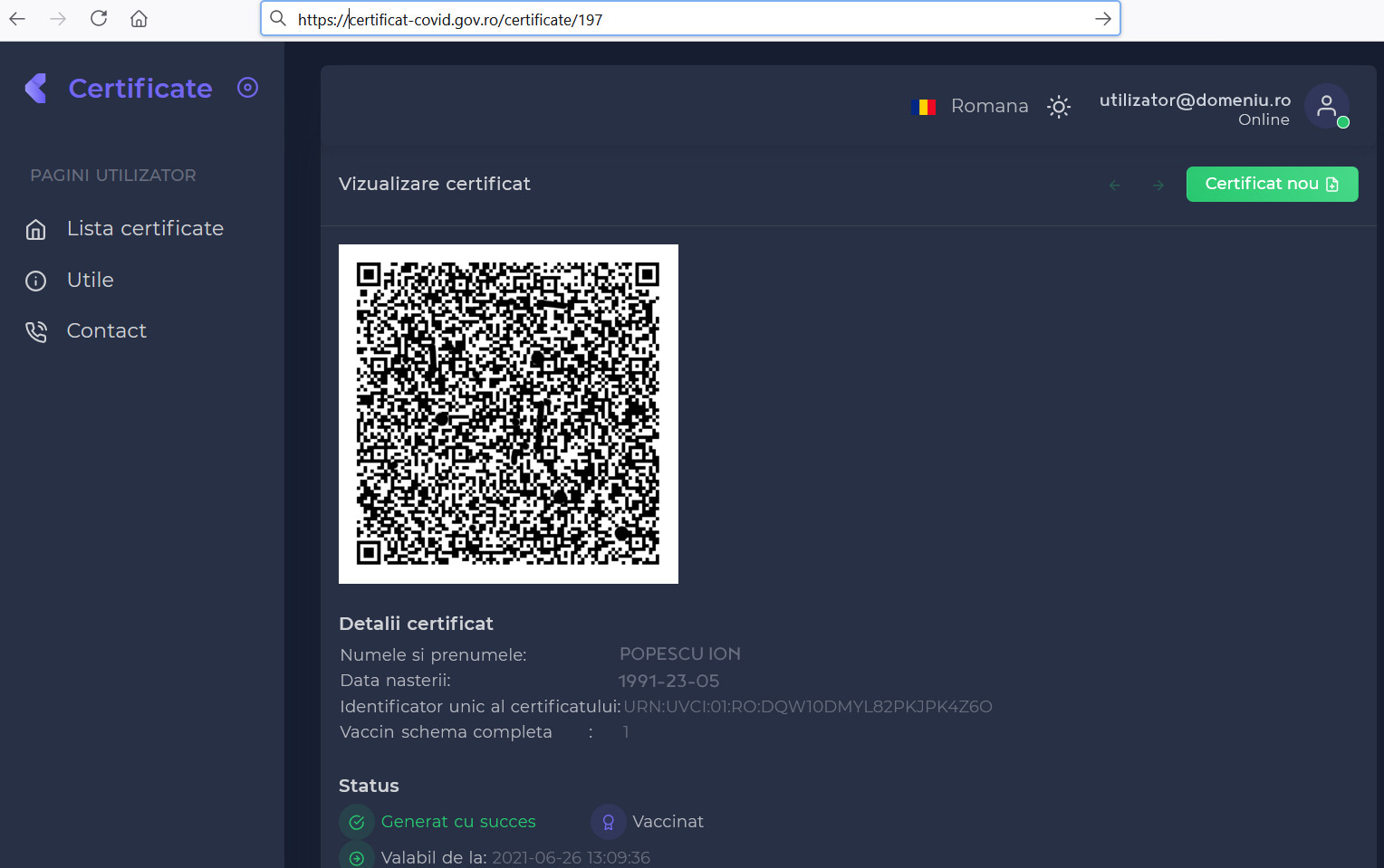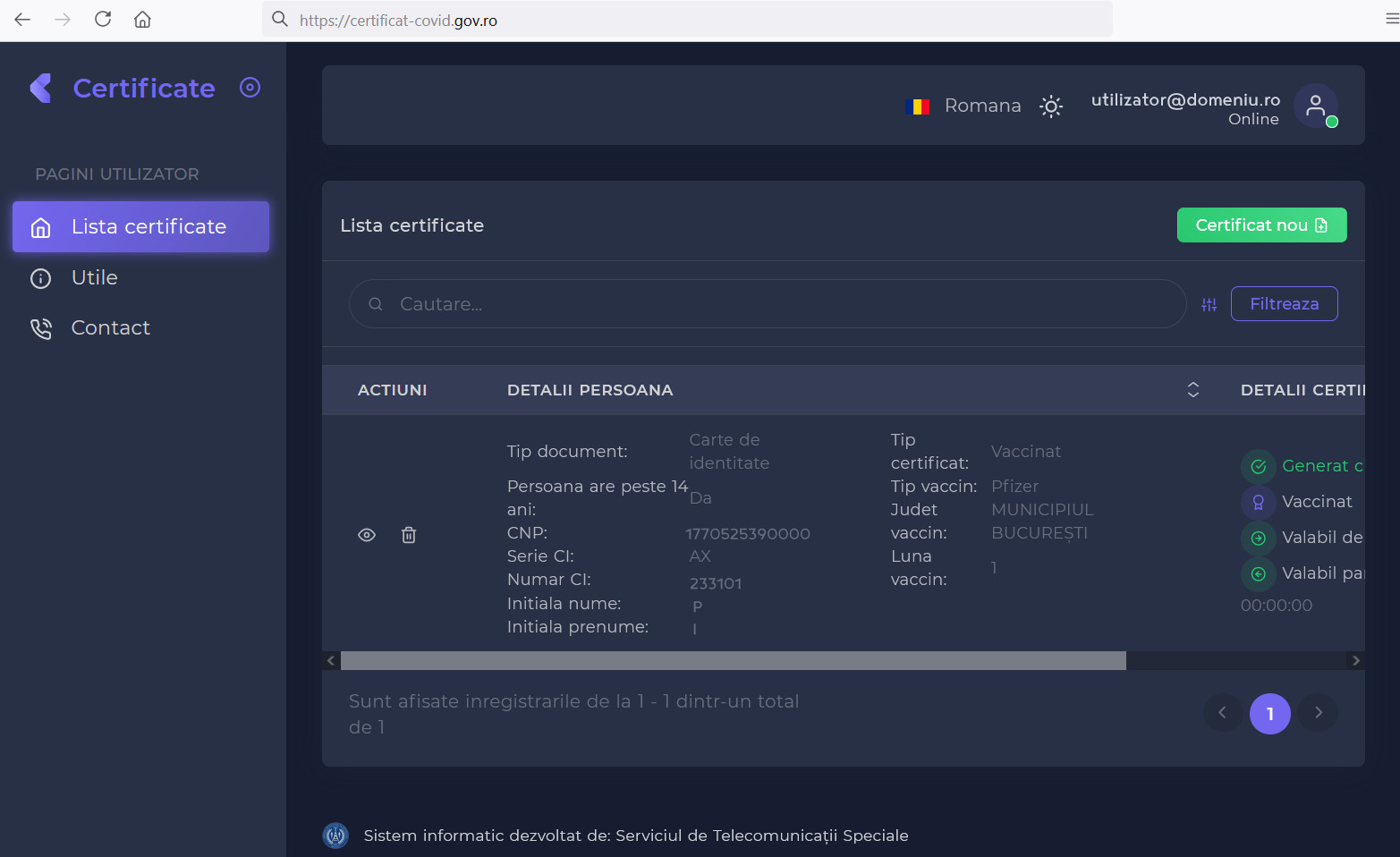 3. Timpul de generare a certificatului poate fi de la câteva secunde, până la o oră, în funcție de numărul de solicitări.