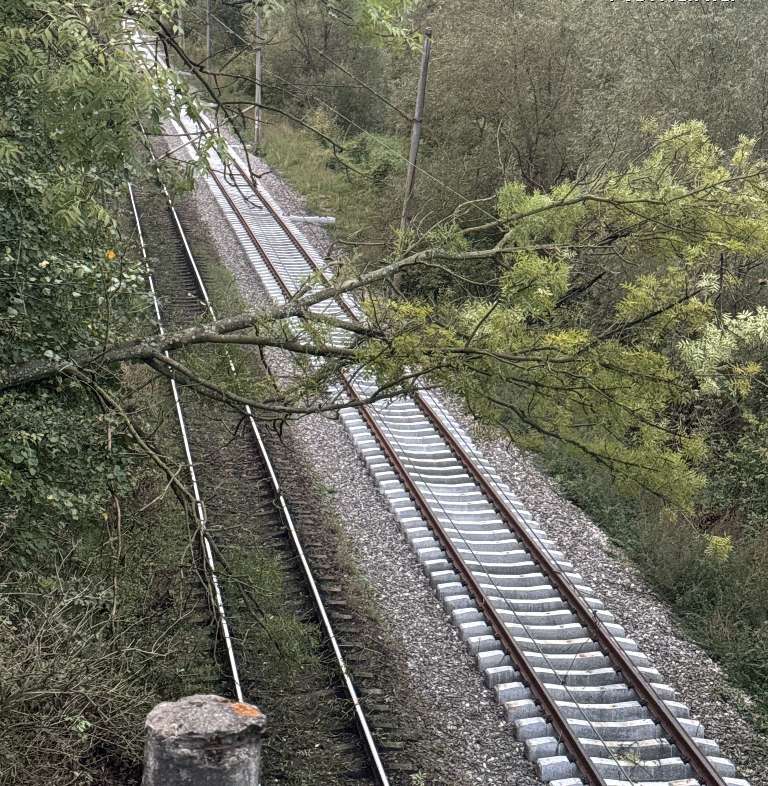 Circulaţia feroviară a fost temporar oprită pe secţia de cale ferată nr. 202 între localitatea Simeria/HD şi localitatea Petroşani/HD din cauza unui copac căzut pe linia de contact.