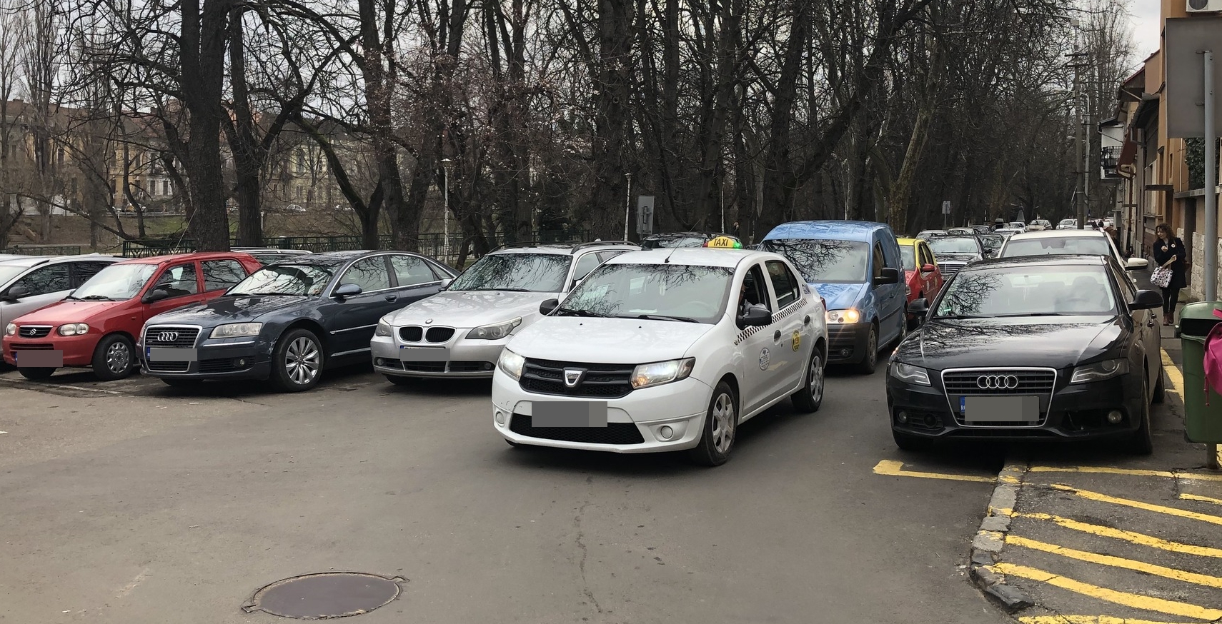 În tot acest timp, în spatele lui s-a format o coadă de zeci de mașini.