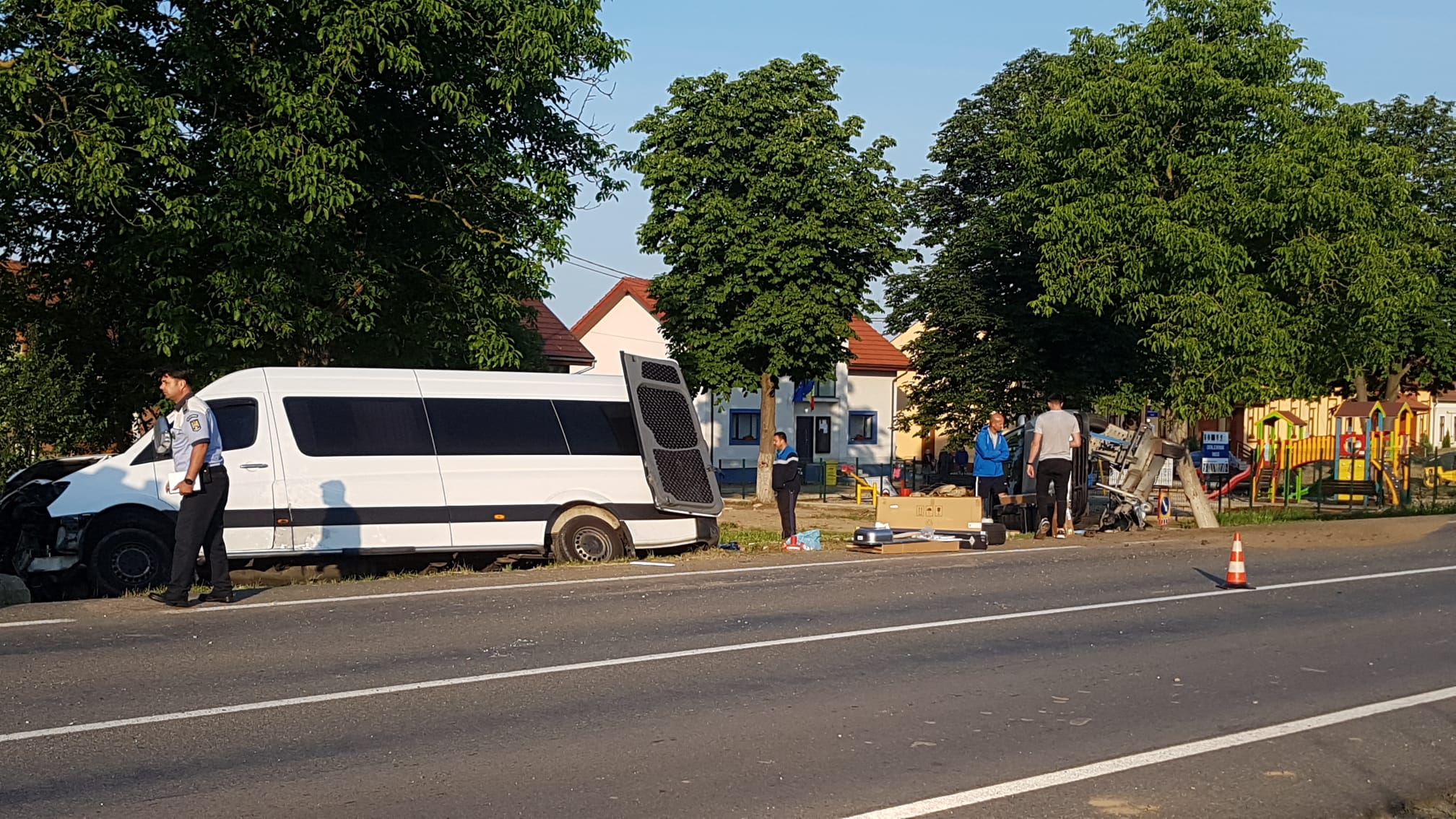 Accidentul s-a produs vineri dimineață în jurul orei 7 pe DN6, în Belinț, județul Timiș. Un bărbat de 21 de ani conducea un microbuz cu pasageri și remorcă dinspre Timișoara spre Lugoj, iar în Belinț a pierdut controlul volanului și a lovit un cap de pod, scrie tion.ro.