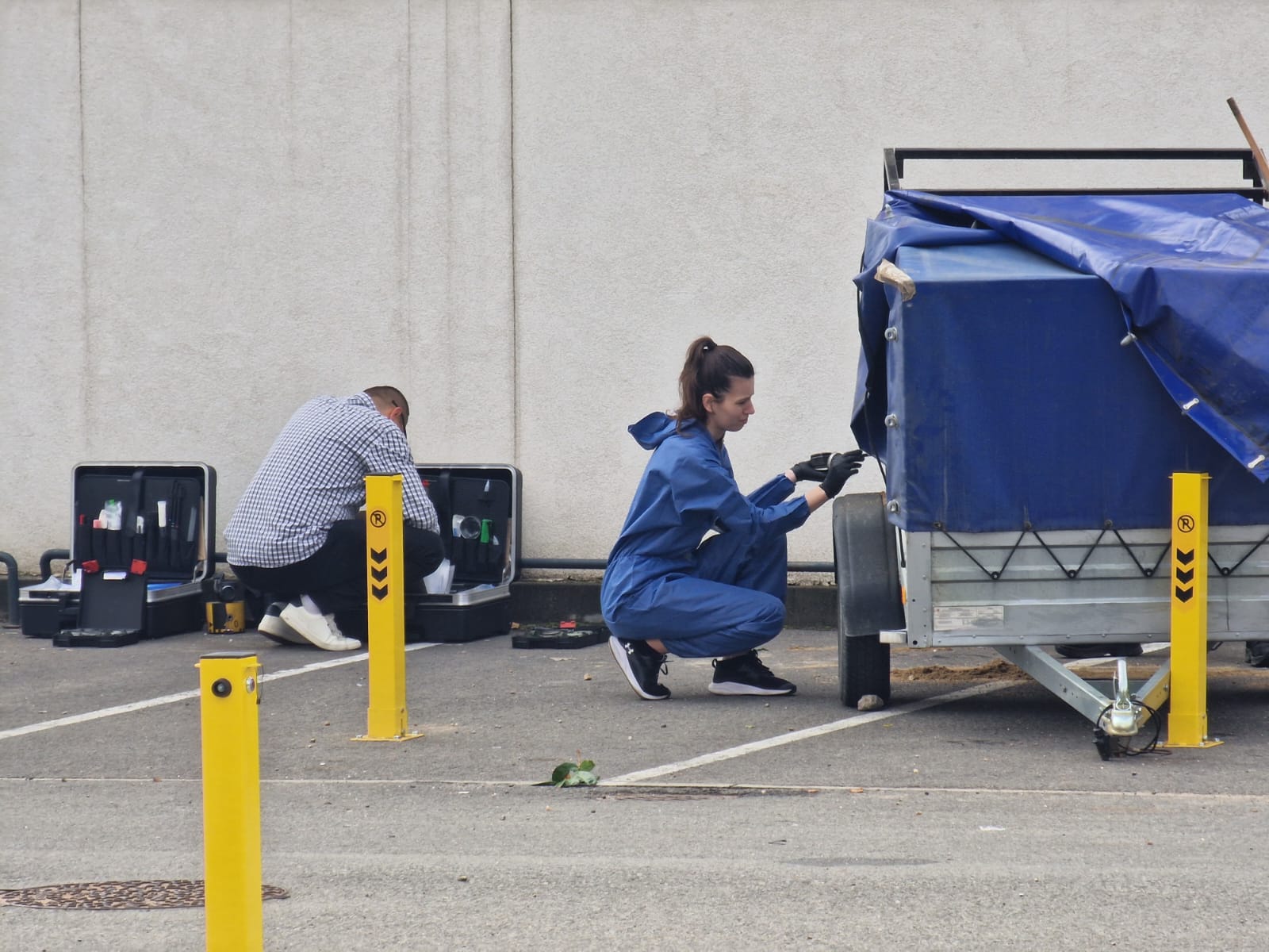 Criminaliștii au încercat să găsească amprente pe remorca în care a fost găsit cadavrul