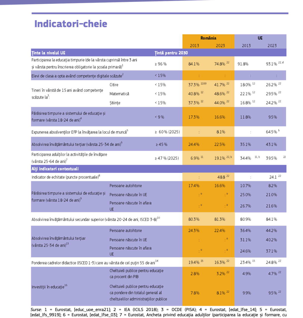 Raportul anual realizat de Comisia Europeană arată progresele sau regresele țărilor din Uniunea Europeană, în funcție de anumite obiective stabilite privind educația și formarea. Aceste obiective comune trebuie atinse până în 2030.