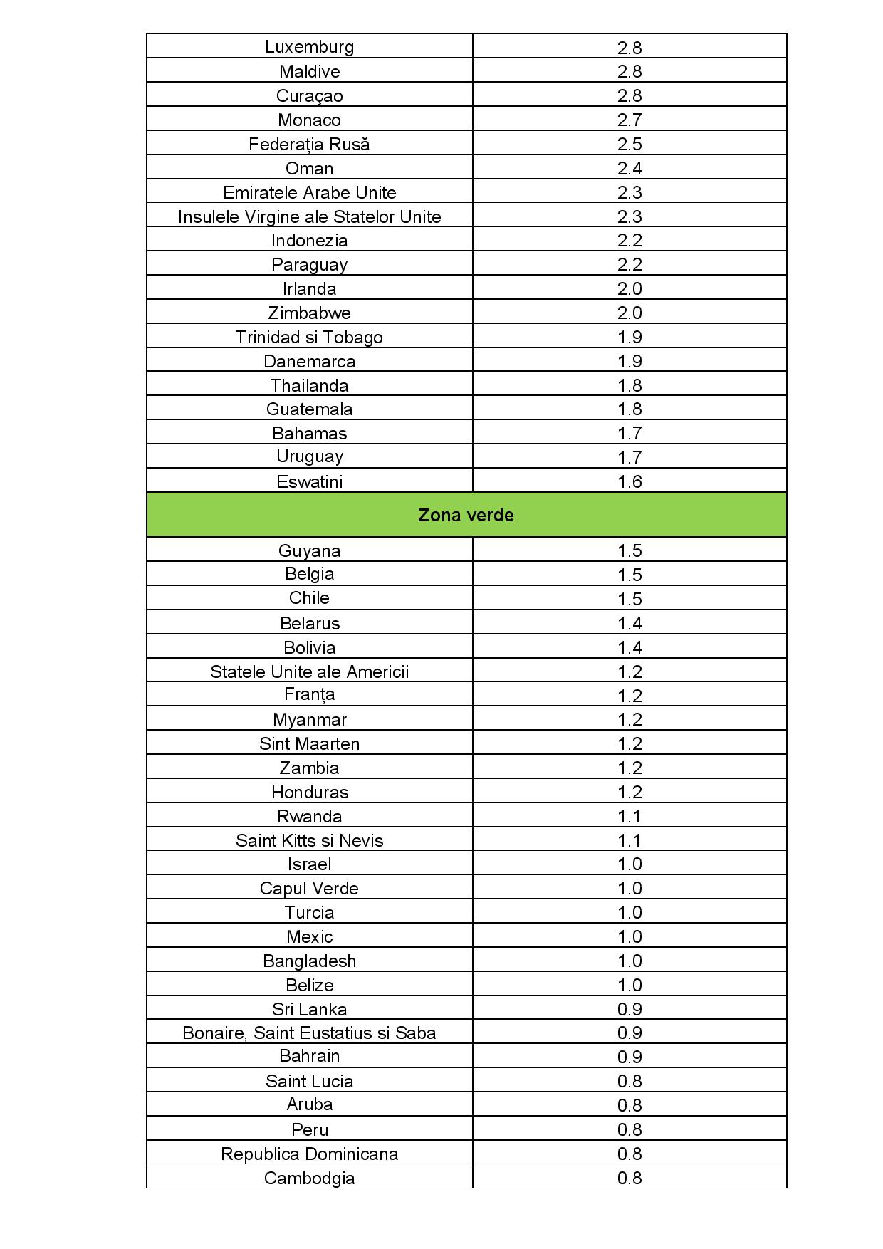 Încadrarea din zona galbenă sau verde în zona roșie, precum și încadrarea din zona verde în zona galbenă, intră în vigoare la 24 de ore de la data publicării în Monitorul Oficial al României a Hotărârii Comitetului Național pentru Situații de Urgență prin care este aprobată lista țărilor/teritoriilor de risc epidemiologic.