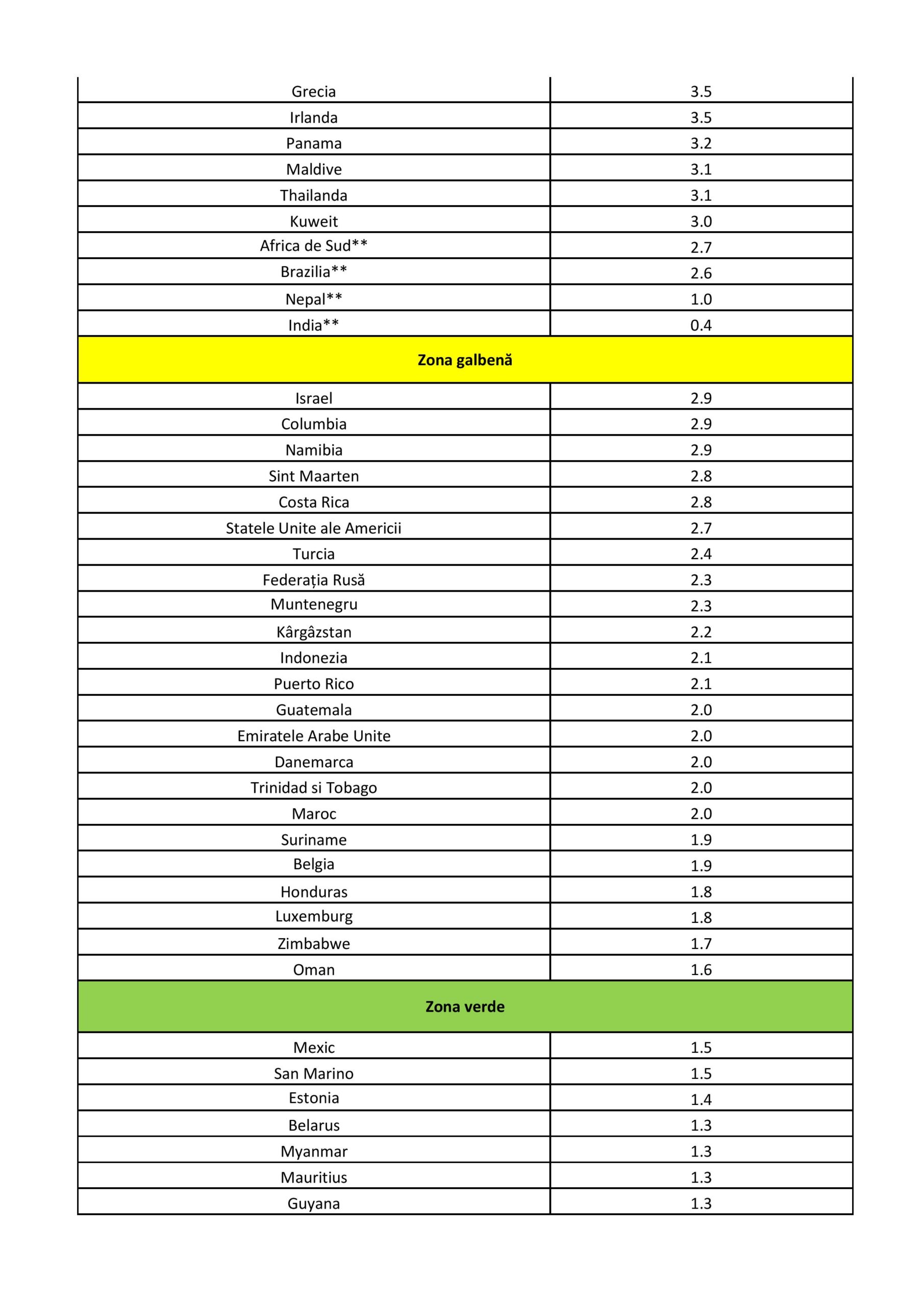 În zona verde au intrat: Luxemburg, Oman și Zimbabwe.