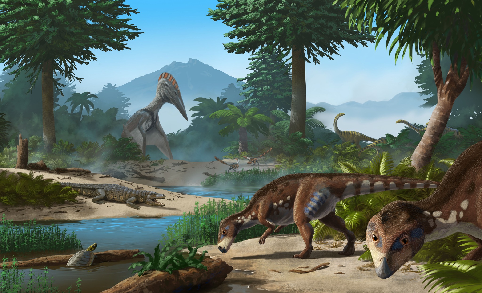 Cele mai vechi fosile atribuite grupului Rhabdodontidae provin din Europa de Est. De acolo, aceste animale s-ar fi putut răspândi spre vest, iar mai târziu anumite specii s-ar fi putut întoarce pe actualul teritoriu al Ţării Haţegului. Fluctuaţiile nivelului mării şi procesele tectonice au dus la crearea unor punţi terestre temporare între diferitele insule, ceea ce a permis dinozaurilor să se răspândească spre alte teritorii, apreciază cercetătorii. În plus, se poate presupune că aproape toţi dinozaurii, inclusiv Transylvanosaurus, au fost capabili să înoate într-o oarecare măsură.