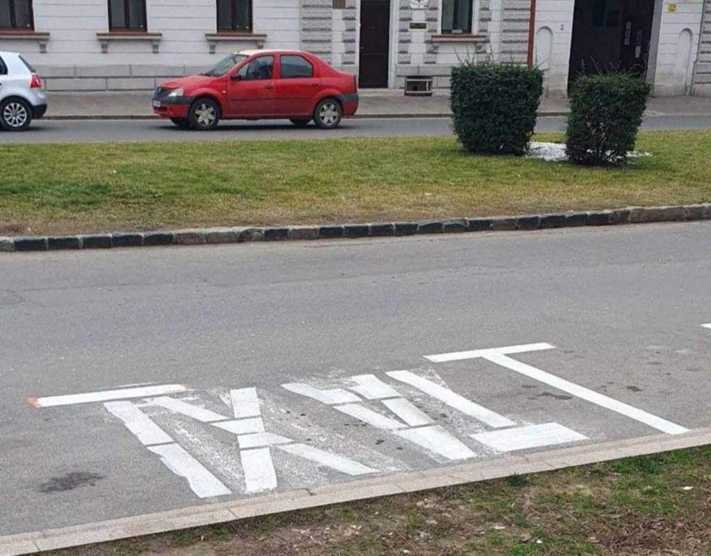 Oradea. Cel mai probabil unul dintre muncitorii firmei nu a știut să scrie corect „TAXI” și a ieșit „TAIX”. Stația cu pricina este cea din fața Spitalului Militar din Oradea.