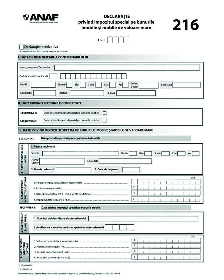 Vorbim despre Formularul 216, necesar pentru raportarea acestor bunuri, trebuie depus până la sfârșitul lunii septembrie pentru locuințe și până în decembrie pentru mașini, conform informațiilor publicate de ANAF. Modelul cererii a fost aprobat prin Ordinul nr. 3.738 din 9 iulie 2024 și publicat în Monitorul Oficial nr. 689 din 17 iulie 2024.