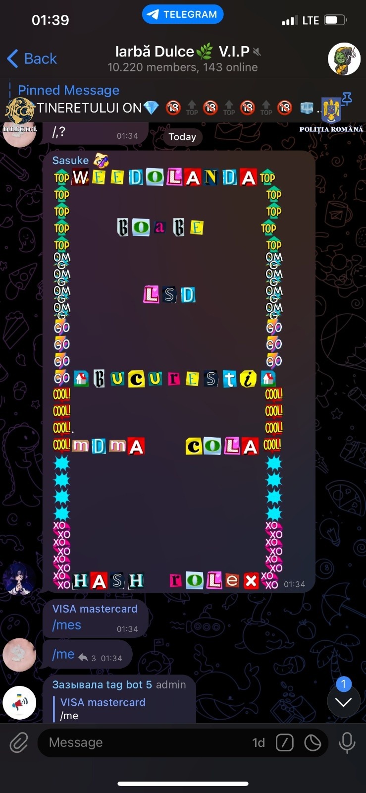 La mai bine de jumătate de an de la constituirea grupului de chat online cercetat de procurorii DIICOT, mai exact pe data de 10 aprilie, se adunaseră deja în jur de 11.000 membri. Aceștia se foloseau de setările de confidențialitate ale aplicației (având doar pseudonime – username-uri), scopul grupului fiind acela de vânzare și procurare de droguri pentru consumul propriu.