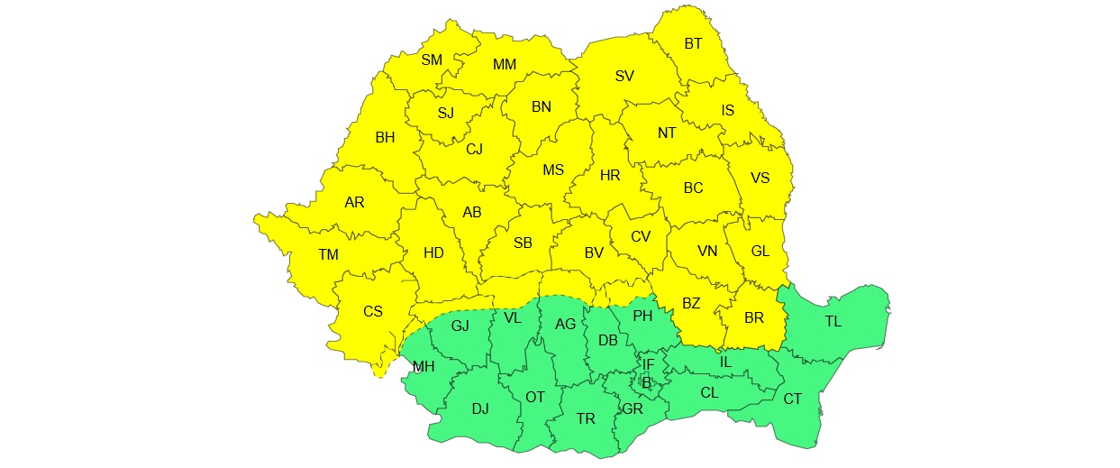 Sâmbătă vor fi ploi, descărcări electrice, vijelii și izolat grindină în jumătatea de nord a teritoriului. Din noaptea de sâmbătă spre duminică, vremea se va răci accentuat, iar ploile se vor extinde și se vor transforma treptat în lapoviță și ninsoare, la început la munte, apoi și în zonele joase de relief. Îndeosebi în zona montană și submontană se va depune strat de zăpadă, în medie de 10…15 cm.