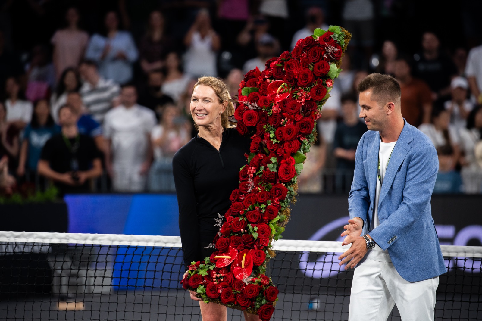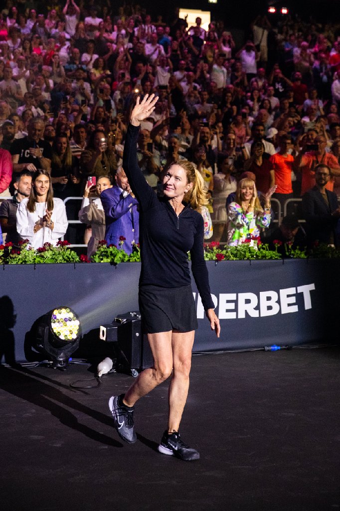 Steffi Graf a mulțumit și ea publicului, iar Andre Agassi a vorbit despre cât de încântat a fost de prima zi petrecută în România, pe terenul de joc, alături de fanii tenisului de aici. Cei doi se află pentru prima oară în România.