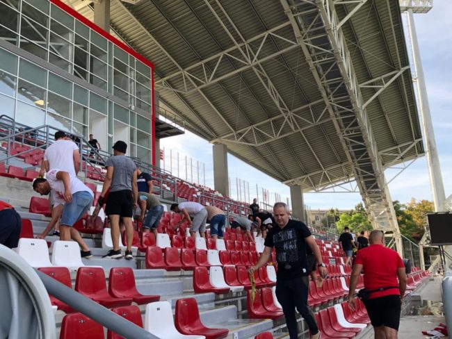 De notat că de la ora 18, câțiva zeci de suporteri au venit la stadion și au spălat scaunele de la tribuna I, deoarece Primăria nu a avut oameni pentru așa ceva. Un gest foarte frumos al fanilor, care și-au arătat, încă o dată, atașamentul față de echipă.