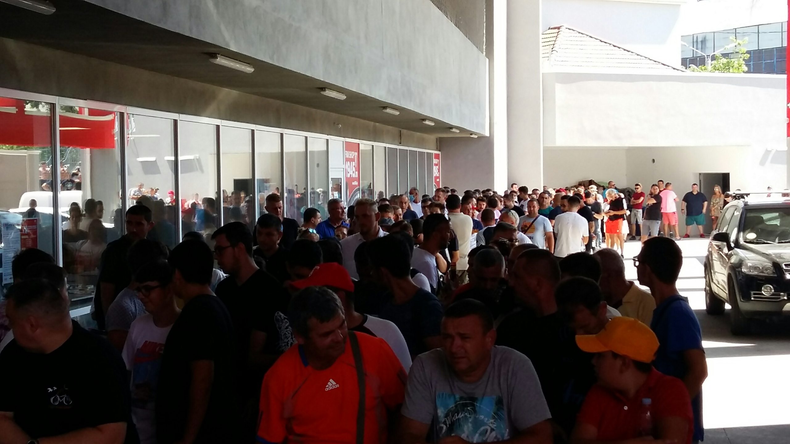 Cu jumătate de oră înainte de startul vânzării tichetelor, adică la ora 14.30, coada era până pe Calea Aurel Vlaicu, pe mai multe rânduri.
