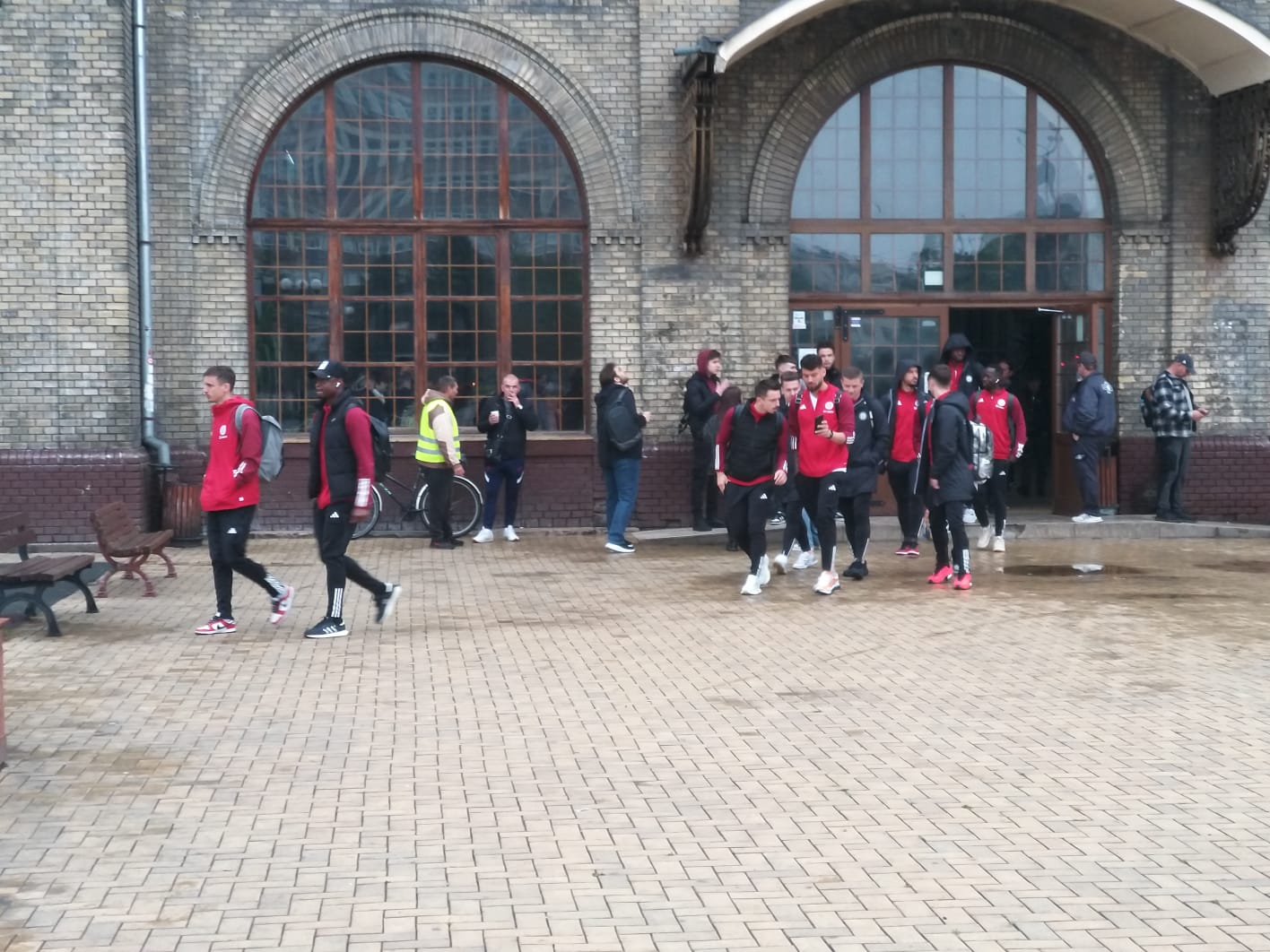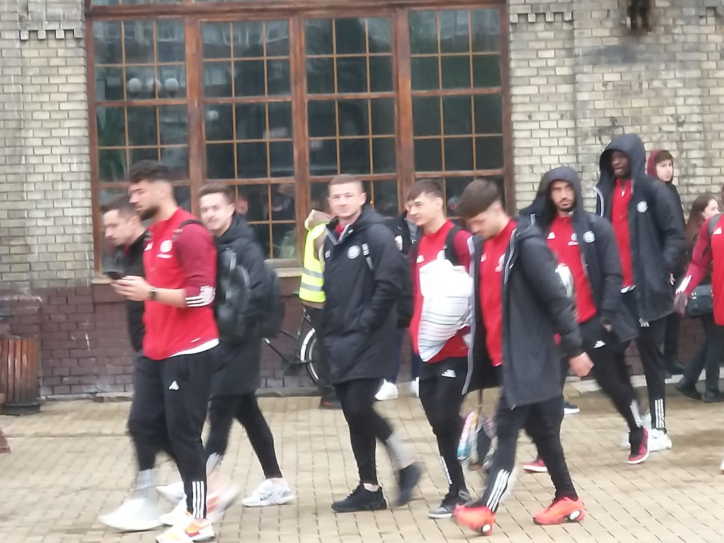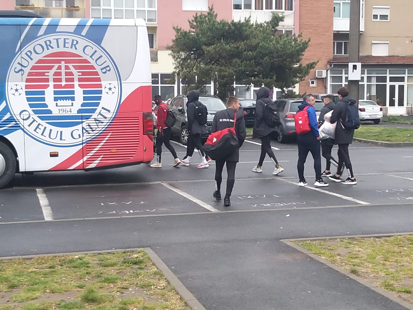În parcare, i-a așteptat autocarul clubului, care a venit gol până în orașul nostru. Având antemergător o mașină a Poliției, cei de la Oțelul au plecat repede la hotel Ibis, iar la ora 11.30 merg pe ICRTI pentru un scurt anternament. Va fi, mai degrabă, o dezmorțire, atâta timp cât s-a călătorit toată noaptea cu trenul, asta chiar dacă la cușetă sau vagon de dormit.