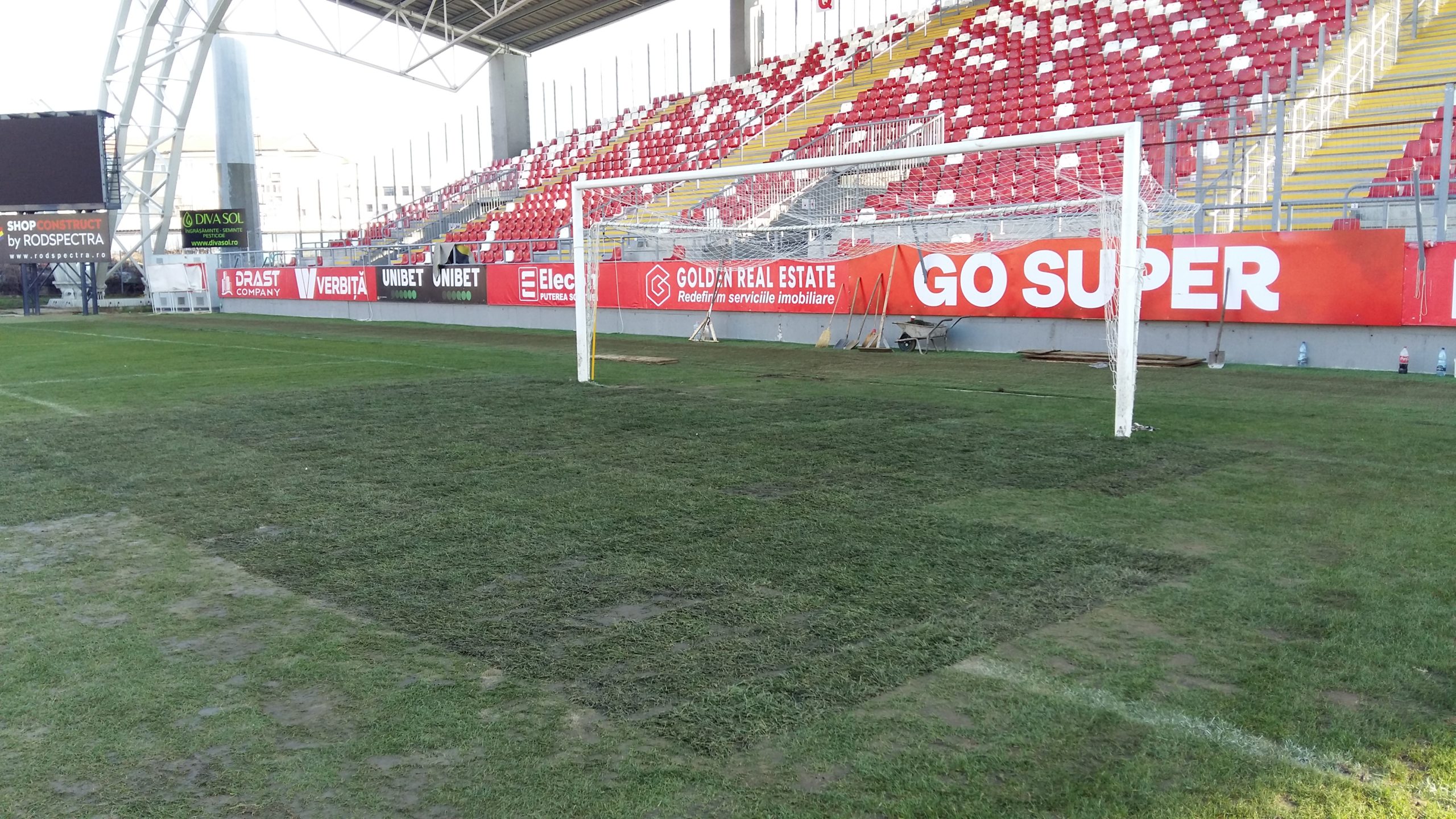 Să nu uităm, gazonul a fost varză din prima zi în care s-a recepționat noul stadion.