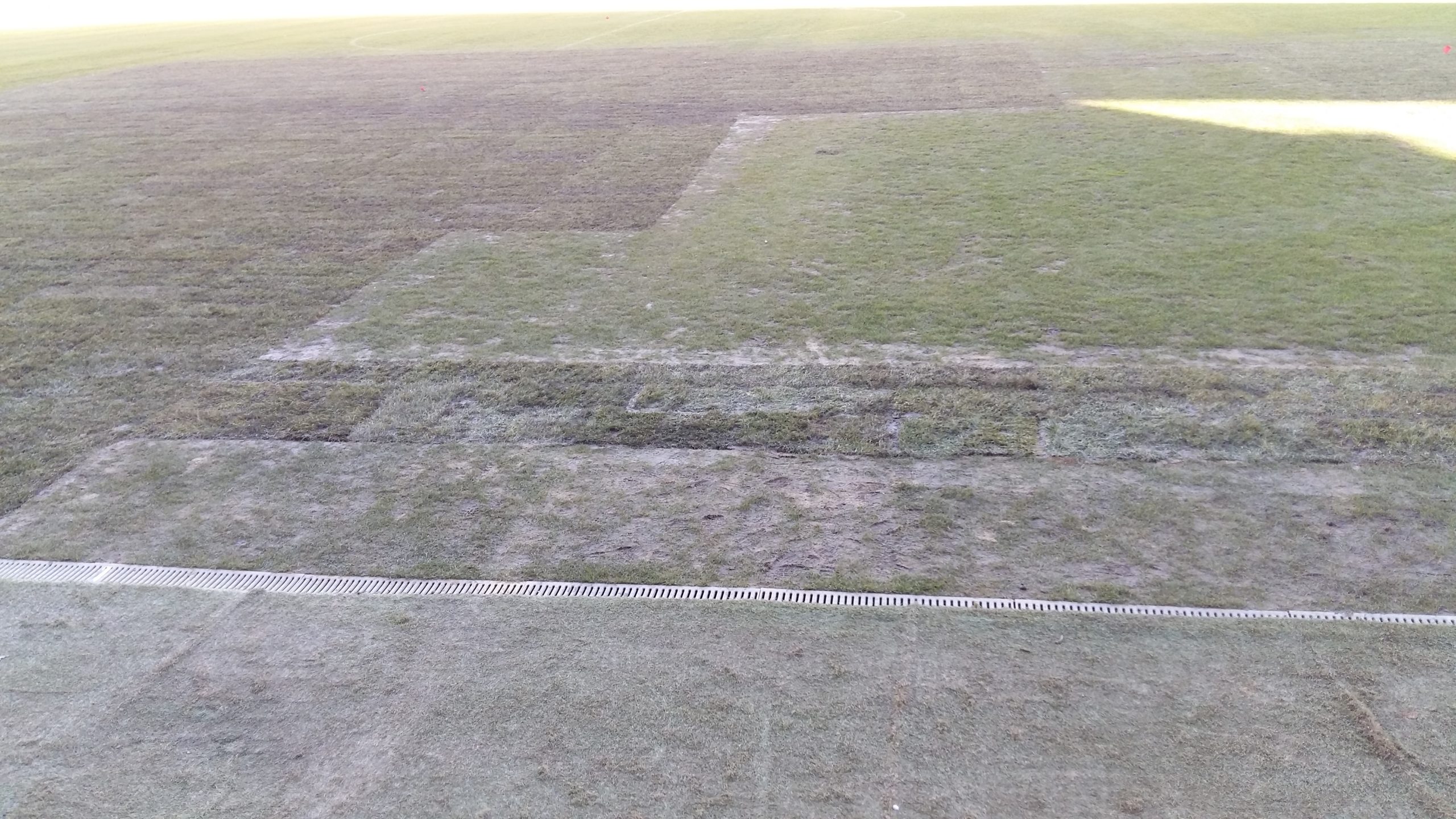 S-a schimbat gazonul în patru locuri. Cea mai mare „felie” este în fața tribunei I. Acolo, apa băltea, pur și simplu, iar terenul a fost impracticabil. Iar la televizor se vedea foarte rău. Apoi, o fâșie schimbată este cea în lungul liniei de margine, tot în fața tribunei I, acolo unde are de lucru arbitrul asistent. În fine, celelalte porțiuni sunt în fața celor două porți. Cu precădere în fața celei dinspre Calea Aurel Vlaicu, acolo unde era – pur și simplu – noroi, la fiecare joc.