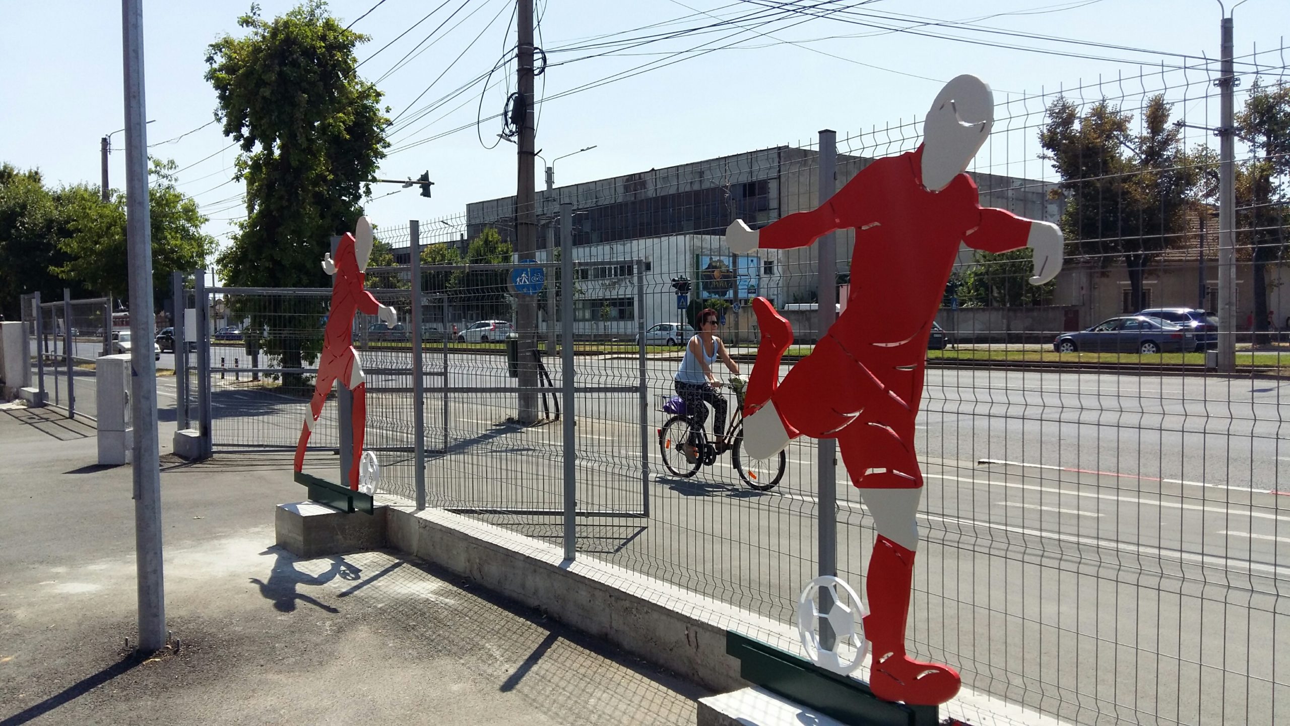 ARAD. Acum două săptămâni, primarul Aradului, Călin Bibarț făcea un „live” din fața stadionului, acolo unde urmau ca a două zi să fi montate 11 figurine, reprezentând fotbaliști în diferite ipostaze, lovind mingea. Edilul spunea cum fața Arenei „Francisc Neuman” se va schimba, acolo urmând să fie o adevărată piațetă, cu băncuțe și pomi ornamentali. Dar, prima condiție era ca gardul să fie dat jos.