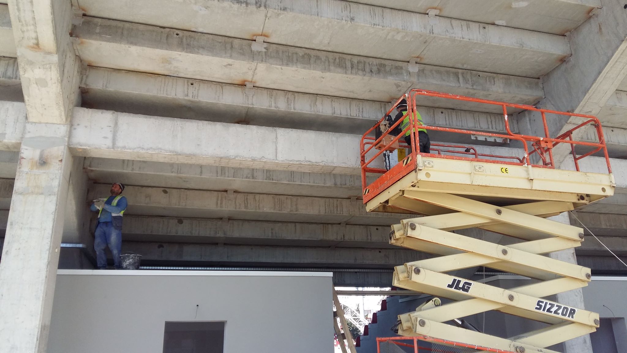 Am trecut, ieri, la orele prânzului, prin șantierul de la stadion. Așa cum a promis, Dragoș Radu, administratorul „Drast Company”, au fost „atacate” mai multe ținte. Cel mai mult e de lucru la tribuna I. Acolo sunt zeci de încăperi, care au fost lăsate de izbeliște de vechiul constructor, iar acum trebuie să se lucreze după el. Așadar, zeci de muncitori de constucții sunt masați la tribuna I, acolo unde se fac lucrări de tencuieli la grinzi, se fac pardoselile, dar nu numai. Atât interior, cât și exterior, la demisol, etajul I și II. Apropo de etajul II, acolo nu era nimic, acum au început să se contureze camerele pentru mass-media.