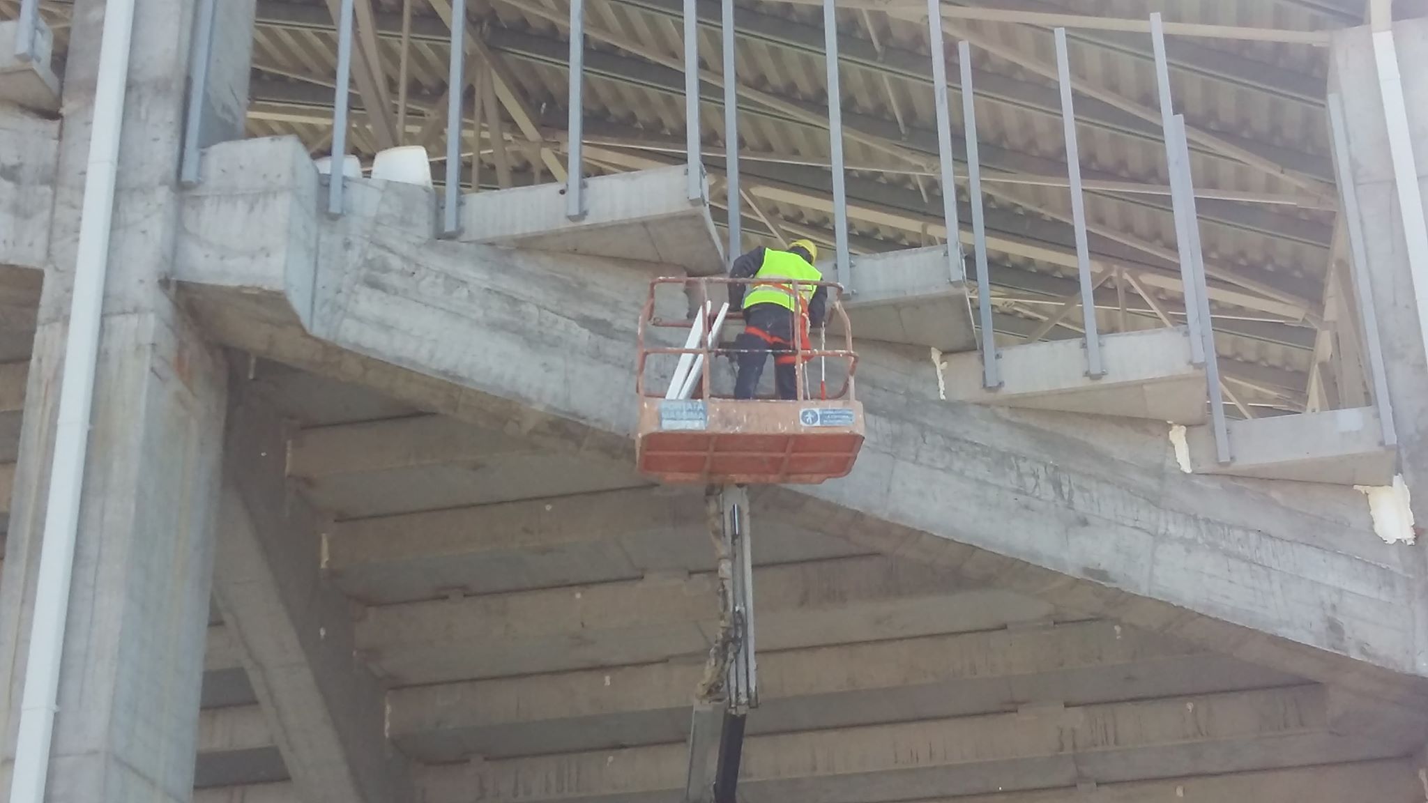 Am mai aflat, la fața locului, că se lucrează la casa de bilete de la Peluza Sud, acolo unde se fac și ample activități de igienizare, deoarece între zona stadionului și calea ferată boscheții sunt ca la ei acasă. Apoi, la ambele peluze se pregătește partea de vopsitorie la intrados. În tot acest timp, au început lucrările de împrejmuire a stadionului și se montează, la tribuna a II-a și cele două peluze, stâlpi pentru gard anti-cădere. E vorba, de fapt, despre controversata închidere a stadionului, care se va face doar parțial, cu meșe. Mai trebuie spus că încăperile de sub Peluza Sud sunt aproape gata, se va trece în curând la montarea de intalații sanitare și electrice, cablurile fiind deja trase. La Peluza Nord se lucrează, acum, la hidranți, iar montatul scaunelor este aproape de final la tribuna a II-a și cele două peluze.