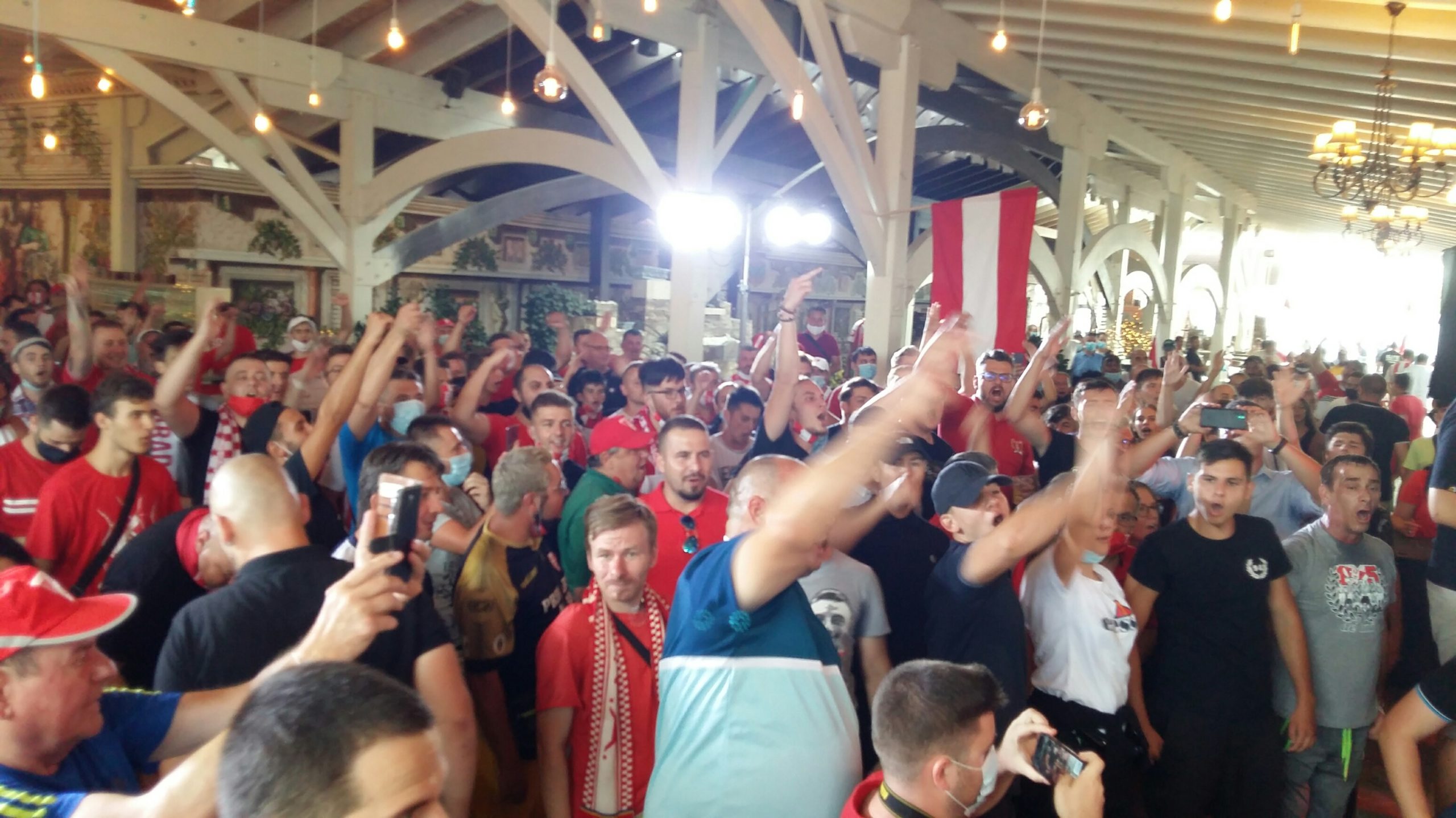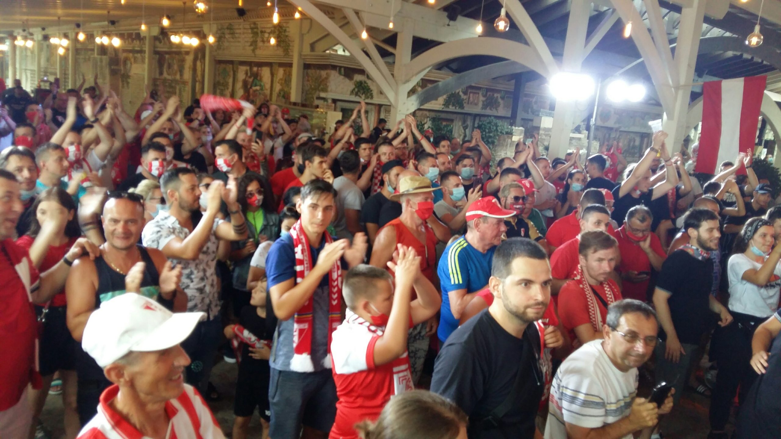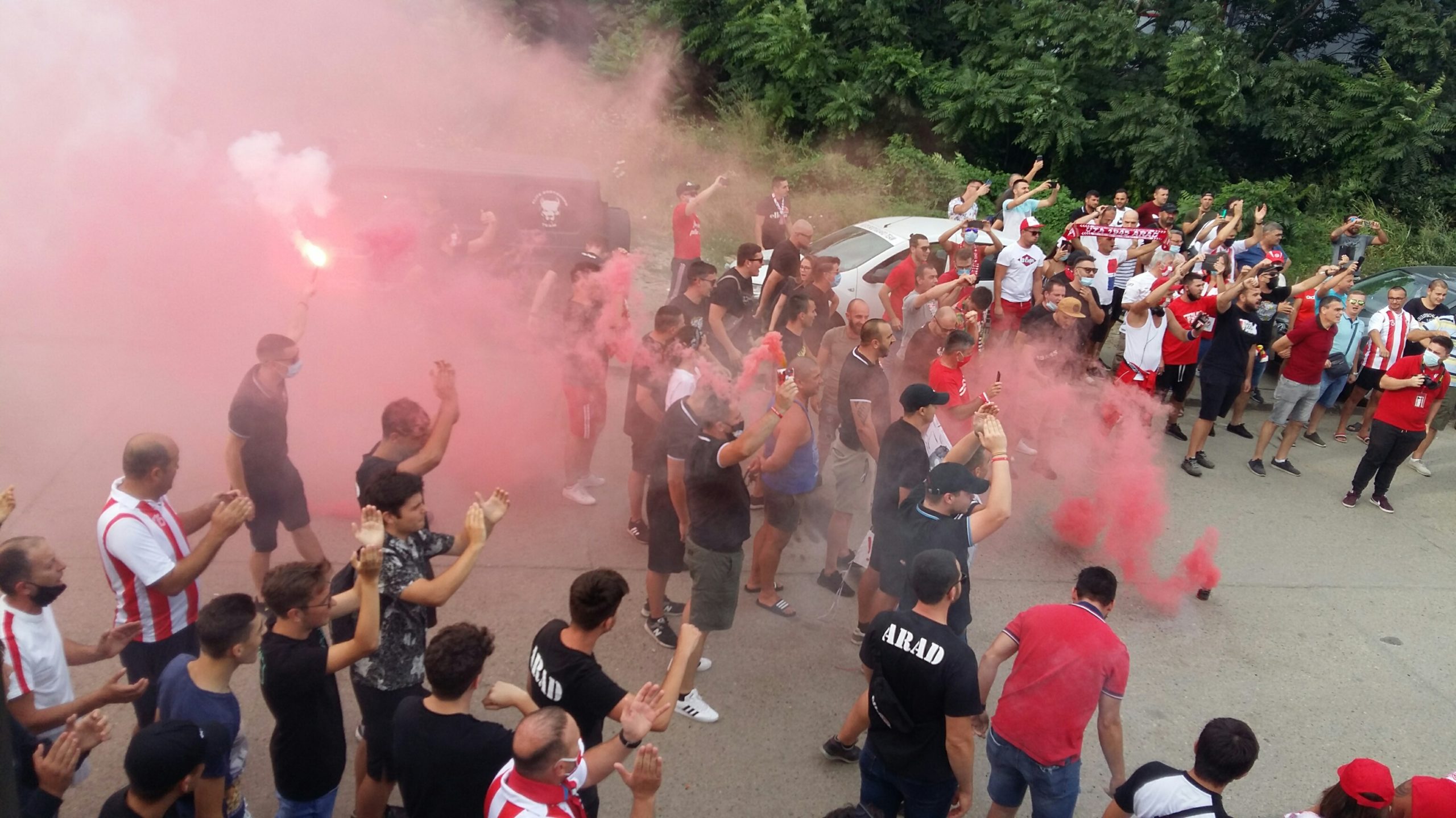 Completați vă rog – fanii i-au așteptat pe jucători cu torțe, fumigene și confeti și cu o mare durere în cur de distanțare socială, de portul măștii în locuri aglomerate, de reguli pentru prevenirea infectării și transmiterii virusului.